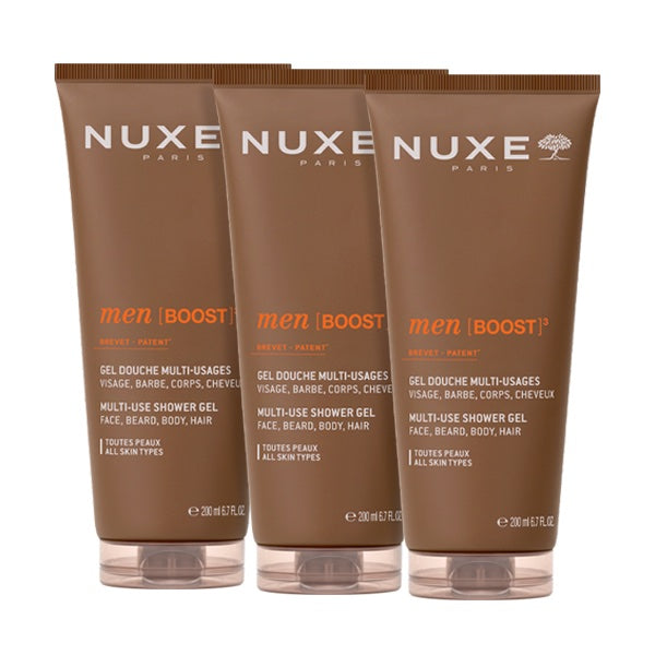 NUXE Men [BOOST]³, la gamme experte qui conjugue efficacité et sensorialité pour révéler toute la force de votre peau. Elle énergise et protège la peau des agressions extérieures (eau, calcaire...) au quotidien. Enrichie en oléo-extrait de frêne breveté.