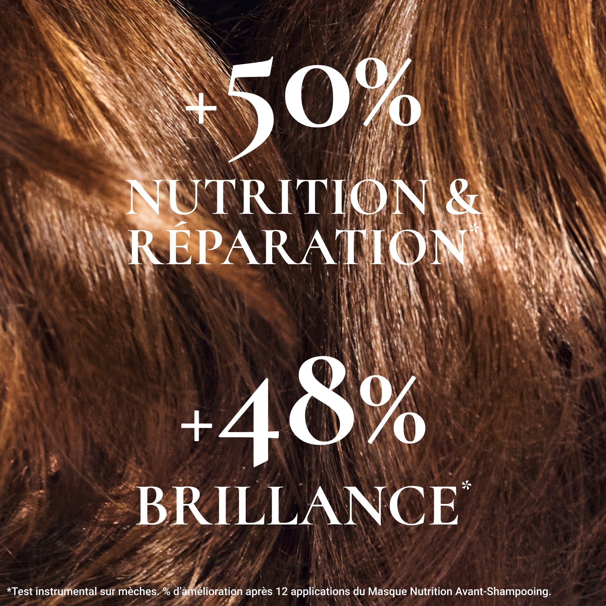 ⁽²⁾ Test instrumental sur mèche - % d'amélioration après 12 applications.