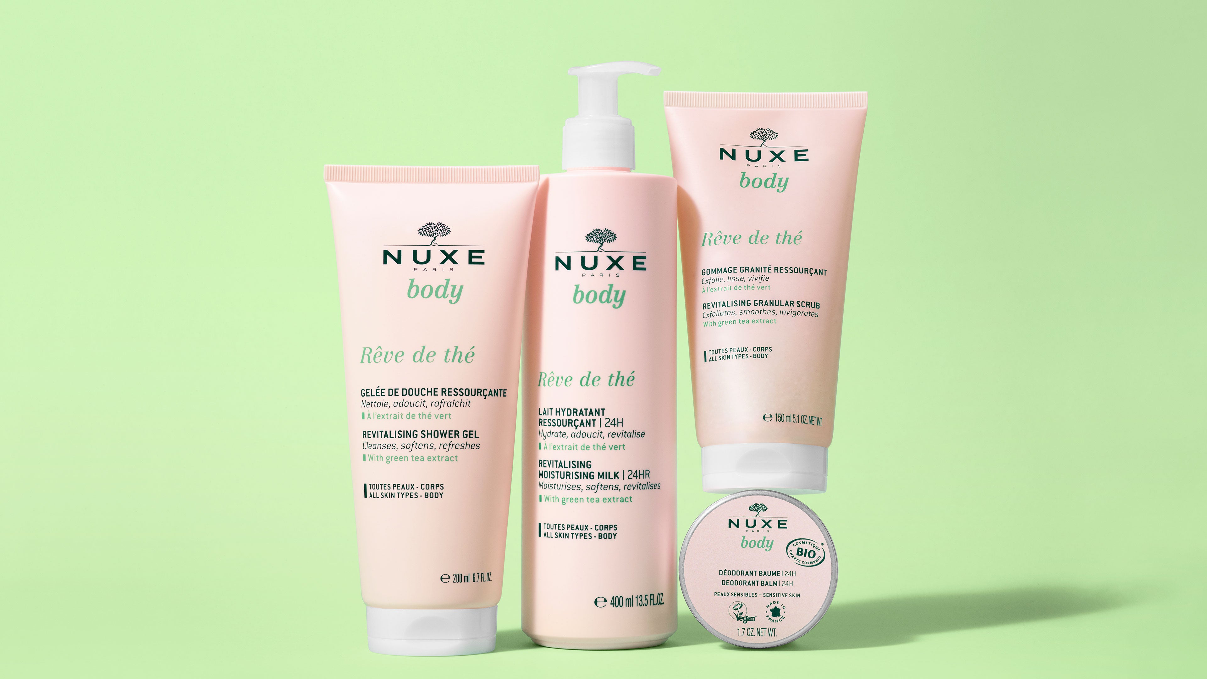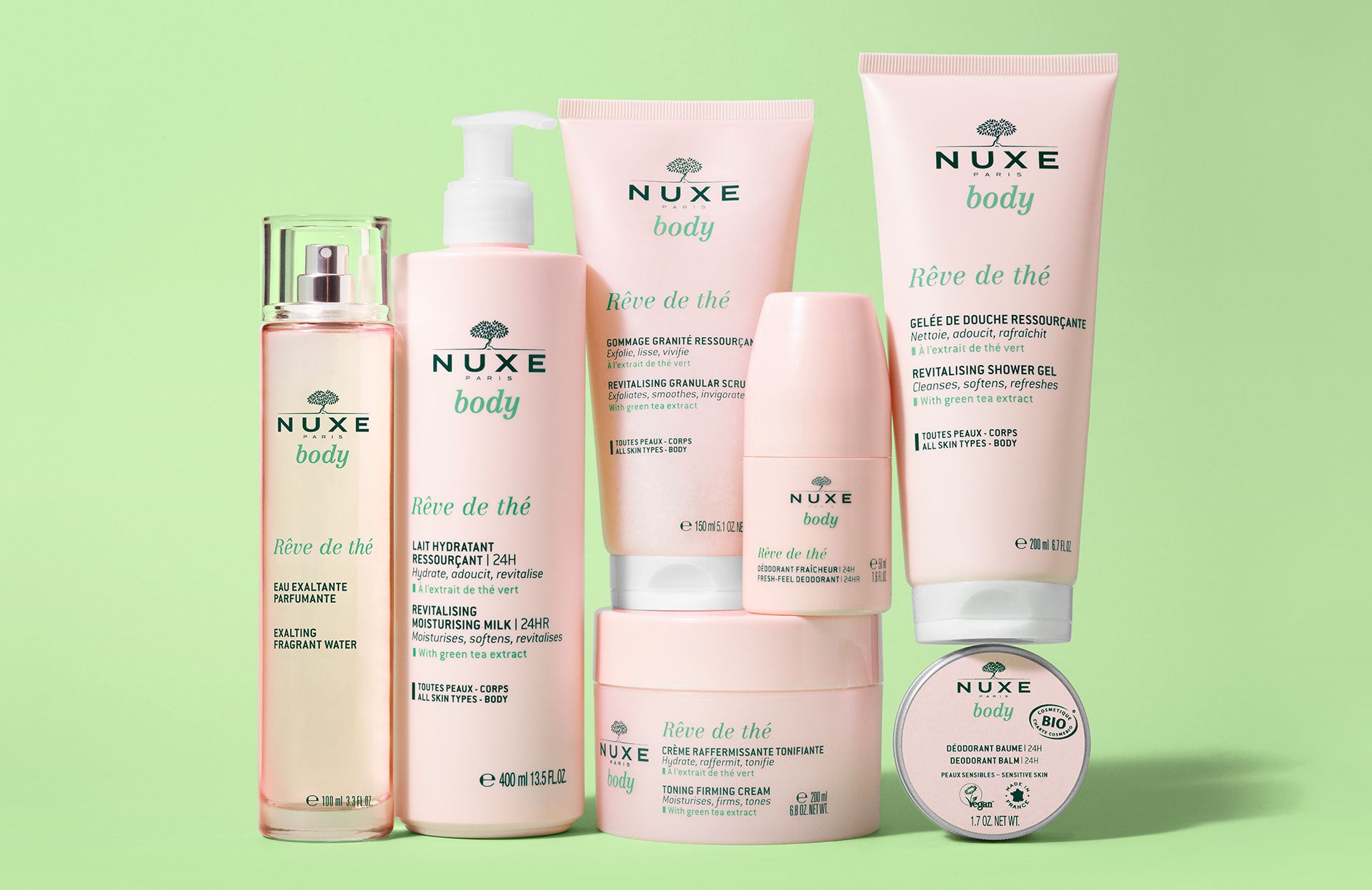 Le Laboratoire NUXE a sélectionné un extrait d’origine 100% naturelle de thé⁽¹⁾, une plante reconnue pour ses vertus hydratantes depuis près de 5000 ans. À la différence du thé noir, le thé vert n’a pas subi d’étape de fermentation : il est donc plus riche en polyphénols, des antioxydants permettant à la peau de se défendre contre les radicaux libres.