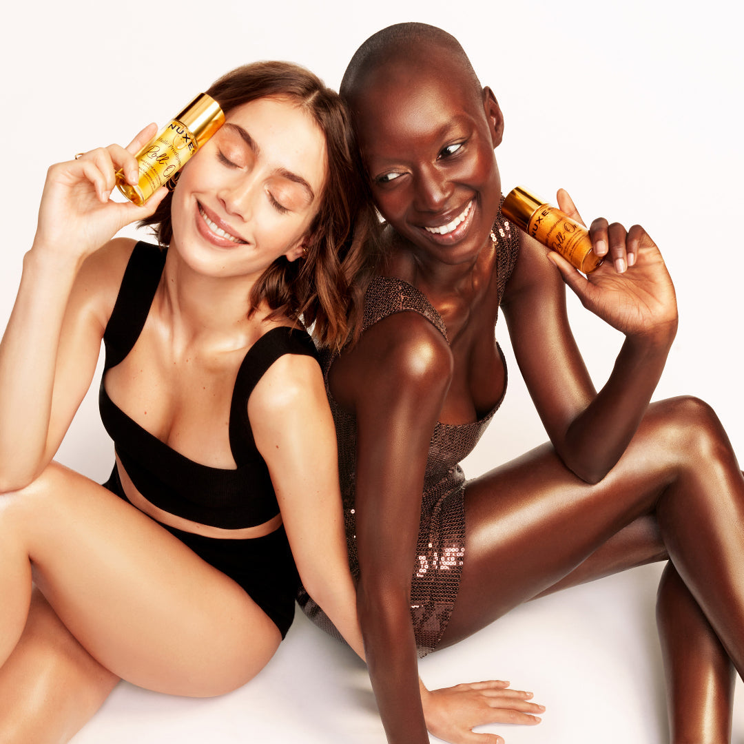 Laissez votre peau rayonner d'un irrésistible éclat satiné, ou d'un éclat or, au toucher sec.