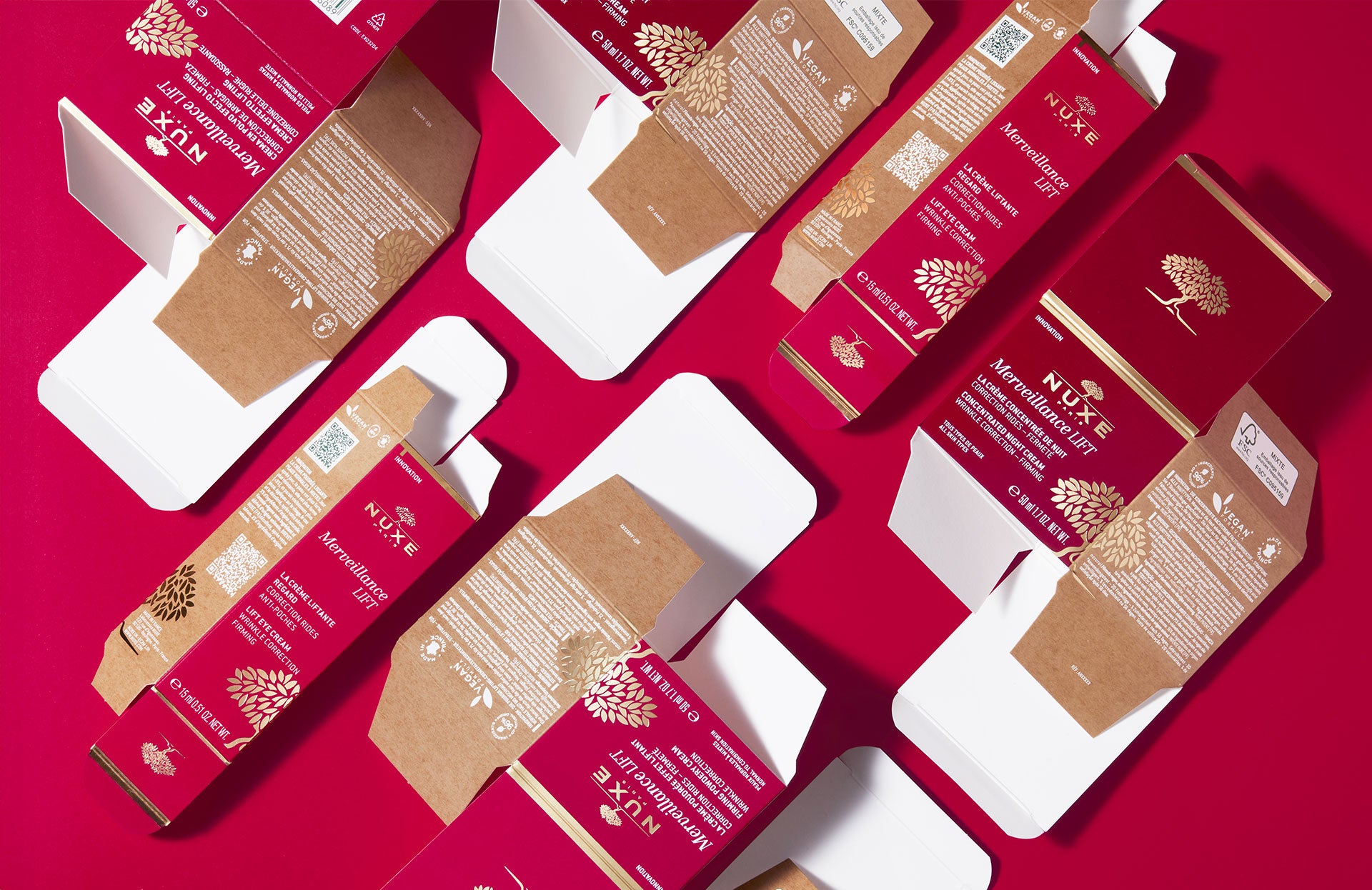 NUXE lutte contre le suremballage en ajustant ses étuis au plus près des pots de ses crèmes de soin visage pour éviter le gaspillage.