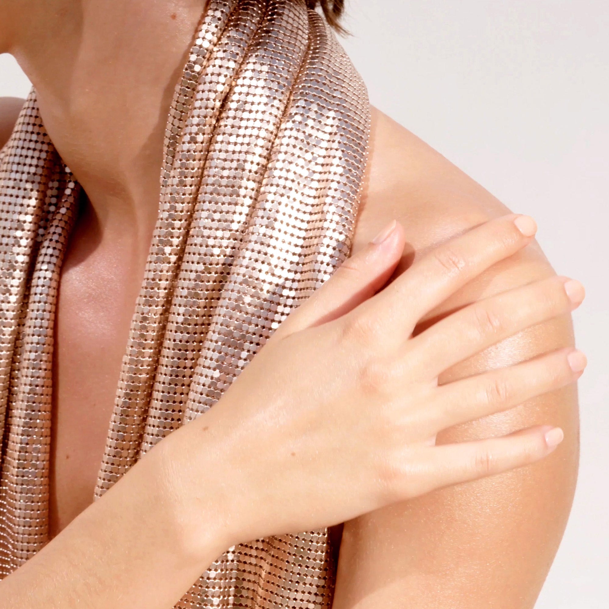 Cette huile sèche pailletée aux nacres d'origine naturelle offre un irrésistible éclat or rose irisé à tous les types de peaux. Elle hydrate, satine et illumine en un seul geste visage, corps et cheveux. Votre peau est sublimée, douce et soyeuse, sans fini gras.