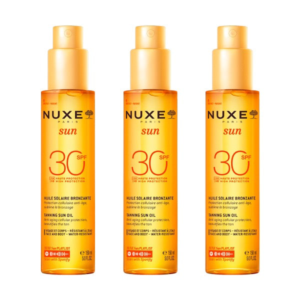Cette Huile Solaire Bronzante SPF30 visage et corps offre une protection large spectre contre les UVA et les UVB tout en prévenant le photo-vieillissement cutané prématuré grâce à son efficacité renforcée sur les UVA⁽²⁾. Résistante à l'eau et non-comédogène, elle convient à toutes les peaux.