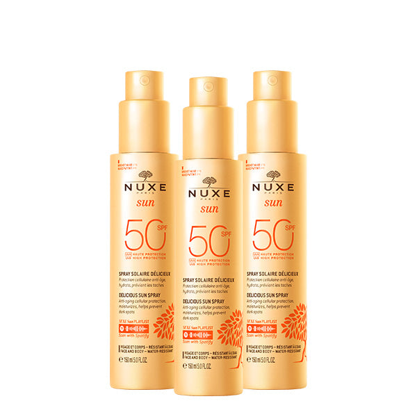 Ce Spray Solaire Délicieux Haute Protection SPF50 visage et corps offre une protection large spectre contre les UVA et les UVB. Sa protection cellulaire anti-âge renforcée⁽²⁾ prévient le photo-vieillissement cutané prématuré et l'apparition des taches. Non-comédogène et résistant à l'eau, il convient à toutes les peaux.