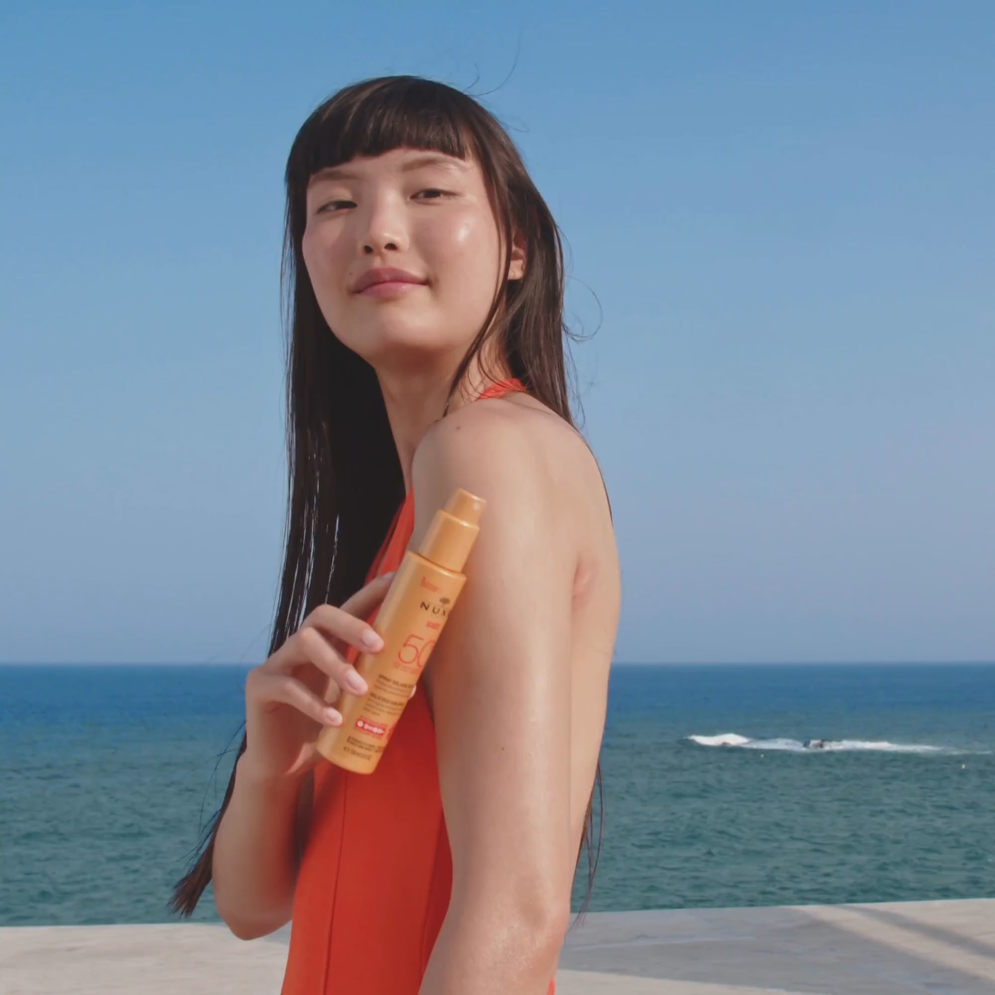 ⁽²⁾Test in-vitro - 2 fois plus de Protection UVA : résultat X2 en moyenne sur l'ensemble des produits de protection solaire NUXE SUN par rapport aux exigences de la réglementation européenne.