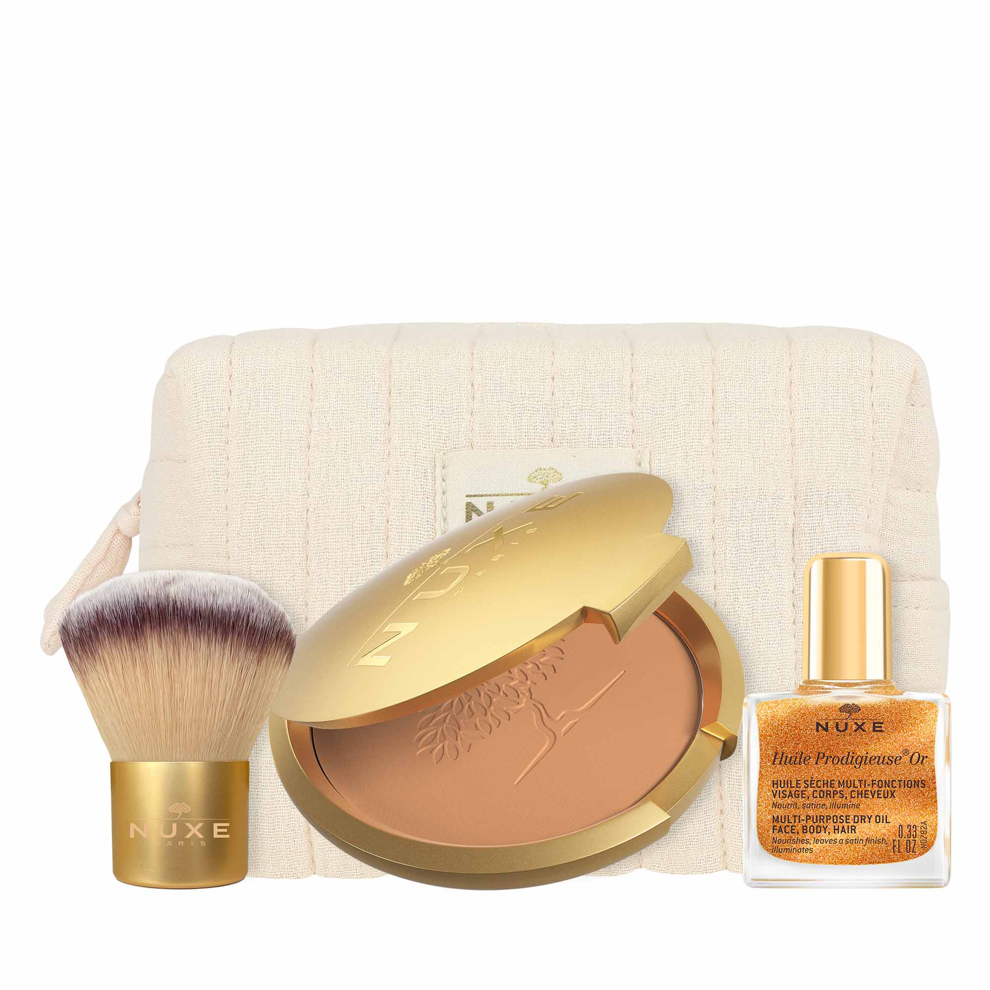 Un duo éclat pour illuminer le teint et sublimer la peau, accompagné de son pinceau kabuki dans une trousse élégante.